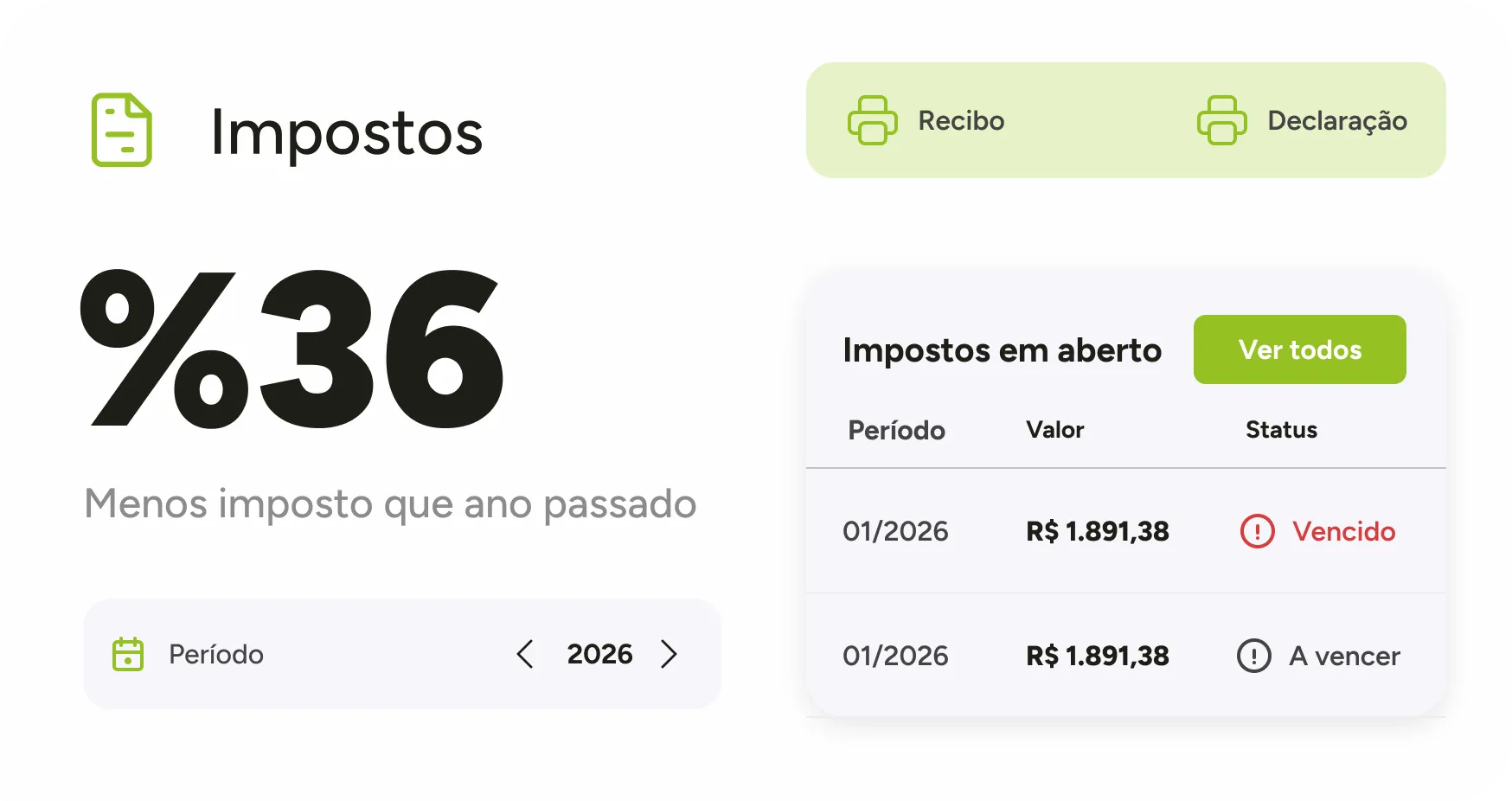 Veja em tempo real os tributos em aberto, valores de principal, multas e juros acumulados. Sincronize pendências e evite surpresas no fechamento do mês.